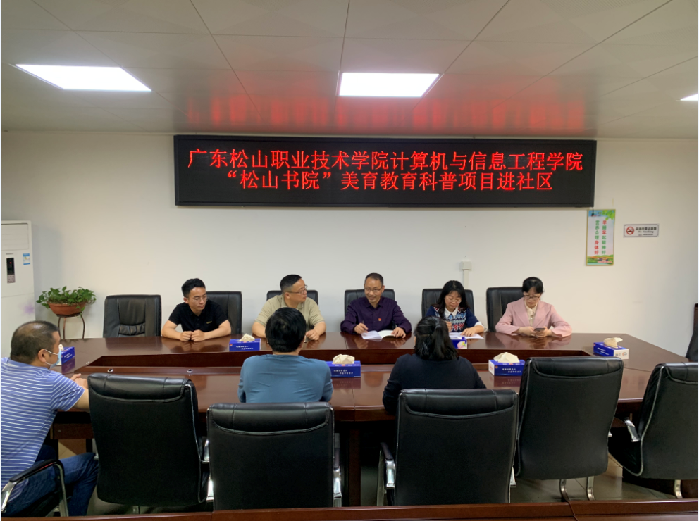 双方围绕“充分发挥美育作用,培育良好社区文化环境”这一主题,深入探讨了以社区和社区居民对美育服务需求为导向,以志愿服务为牵引,充分发挥广东松山职业技术学院图形图像制作教研室艺术设计专业优势的建设思路,致力于打造融合社区美育科普体验、艺术鉴赏、文化交流为一体的美育教育活动中心。