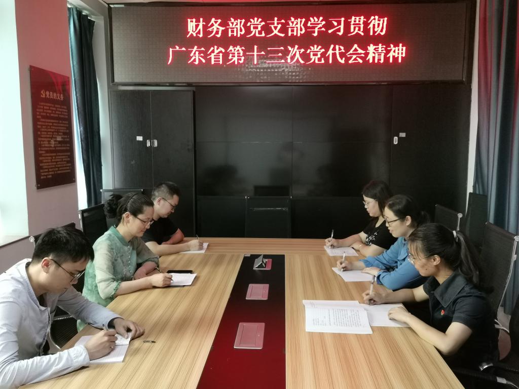 6月20日,财务部党支部组织全体党员召开党员大会,深入学习广东省第十三次党代会精神。会议由财务部党支部书记朱艳主持。