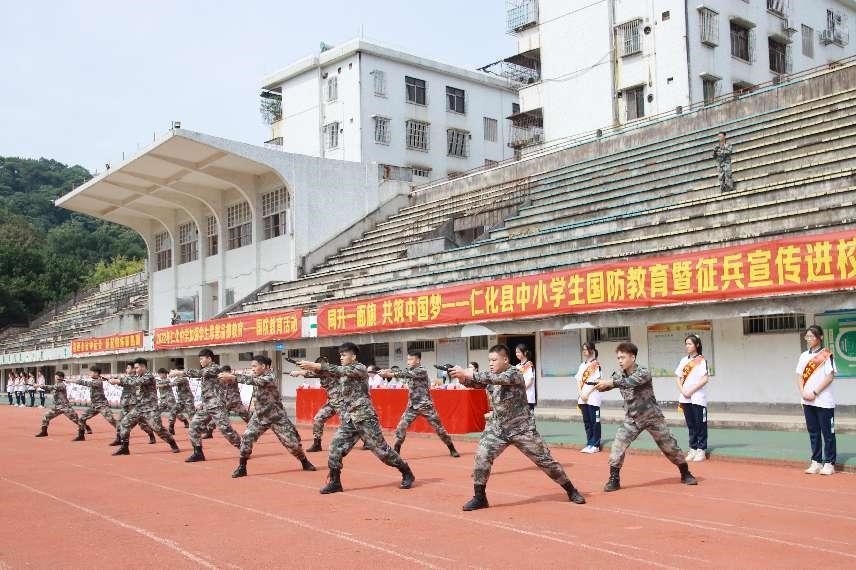 升旗仪式结束后,学校退役军人大学生还为仁化中学的同学们表演了匕首操。退役大学生们紧握利刃,目光如炬,招式干练,动作划一,呐喊震天,无不将中国军人的凛然正气和飒爽英姿体现得淋漓尽致,赢得了全场师生的阵阵掌声。随后,两校国旗护卫队队员还就入场步姿以及升旗、甩旗、收旗等环节动作要领进行了深入交流。