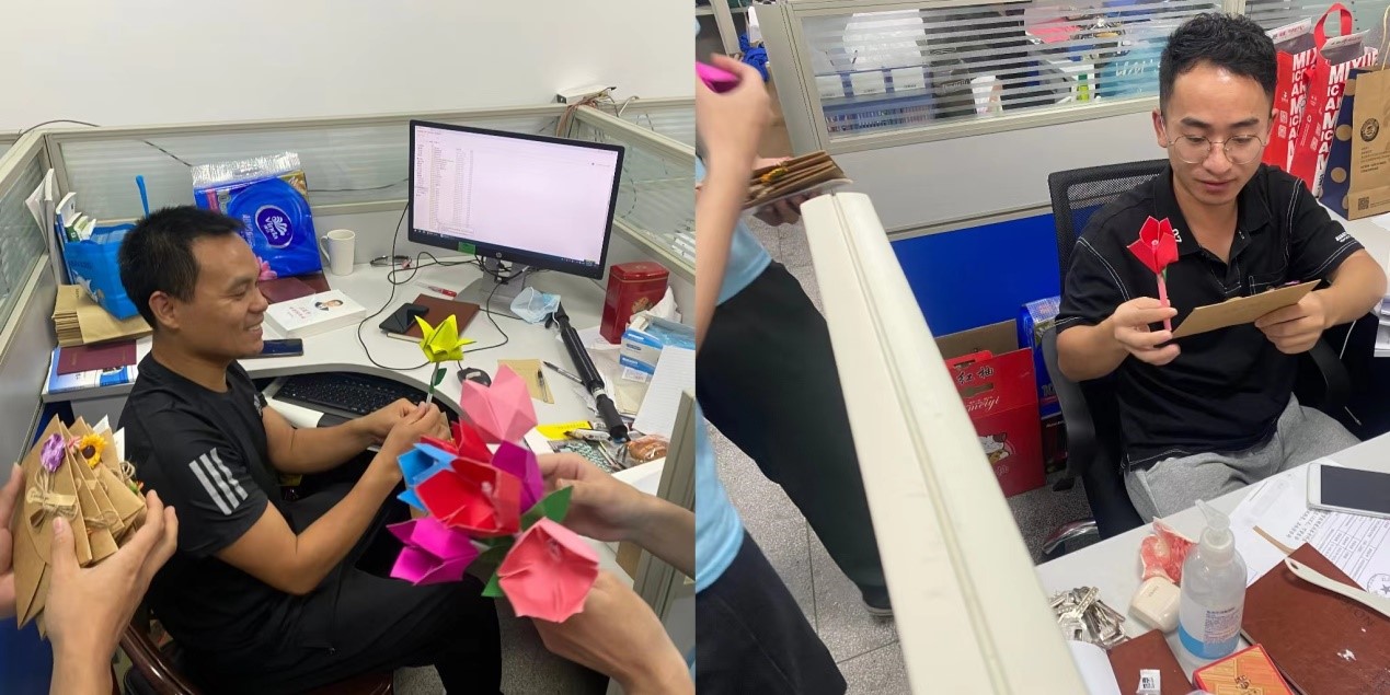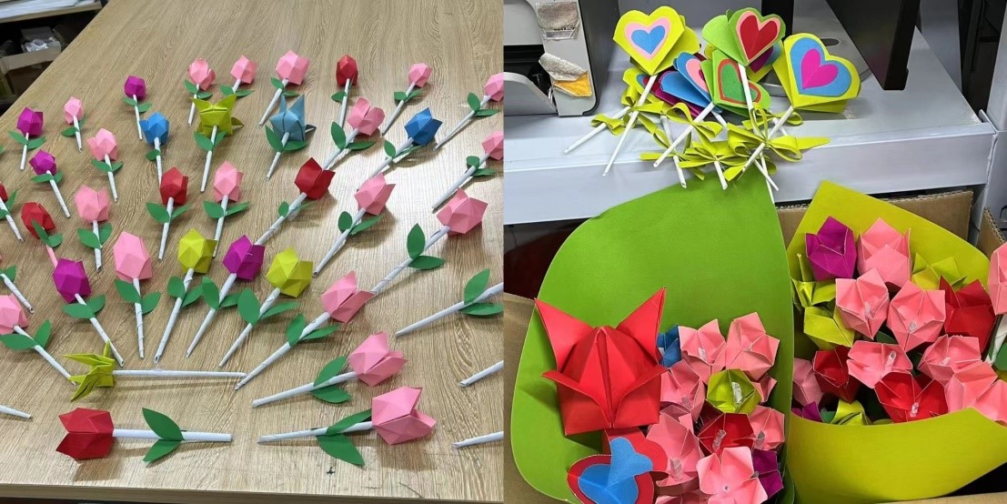 每一朵纸花都是一份虔诚的祝福,每一次折纸都是深厚感情的融入,每一次粘贴都是学生发自内心的感恩。在学生的努力下,一份份特别的惊喜传递给学院的老师们,就像是鸟儿反哺一样流露出让人振奋的感情。