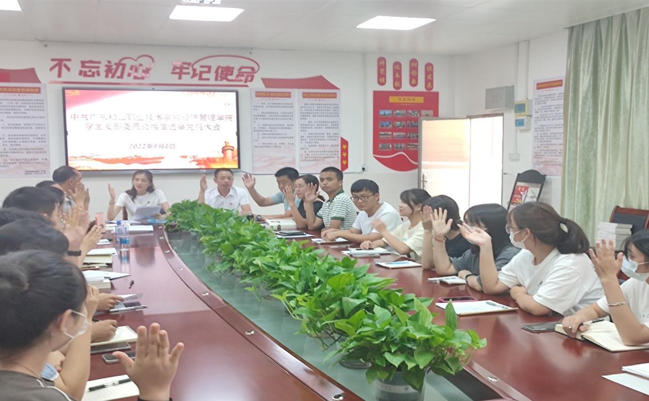 赖韦珍同志代表学生党支部向大会作工作报告。报告指出,学生党支部成立三年来,始终以党的政治建设为统领,以全面提高学生的综合能力为核心,以建设学习型、服务型、创新型党支部为目标,以“三会一课”活动和主题党日活动建设为抓手,不断创新工作思路和打造党建品牌,从把握导向、守好阵地、抓好队伍建设等方面下功夫,广泛深入地开展思想政治工作,加强党员队伍和基础服务型党组织建设,推进党史学习教育入脑入心,充分发挥学生党支战斗堡垒作用和党员先锋模范作用,在组织建设、政治担当、党建带团建、疫情防控等方面取得了一系列成绩。2020年4月,经济管理学院学生会被广东省学生联合会授予2019—2020年度广东省优秀学生会荣誉称号;团委被评为2020-2021年度“广东省五四红旗团委”;2019级行政管理2班团支部被评为2020-2021年度“全国高校活力团支部” “韶关市五四红旗团支部(总支)”;2021年6月,经济管理学院学生党支部被学校评为广东松山职业技术学院先进基层党组织。与会党员同志对学生党支部的工作及取得的成果给予了充分肯定。