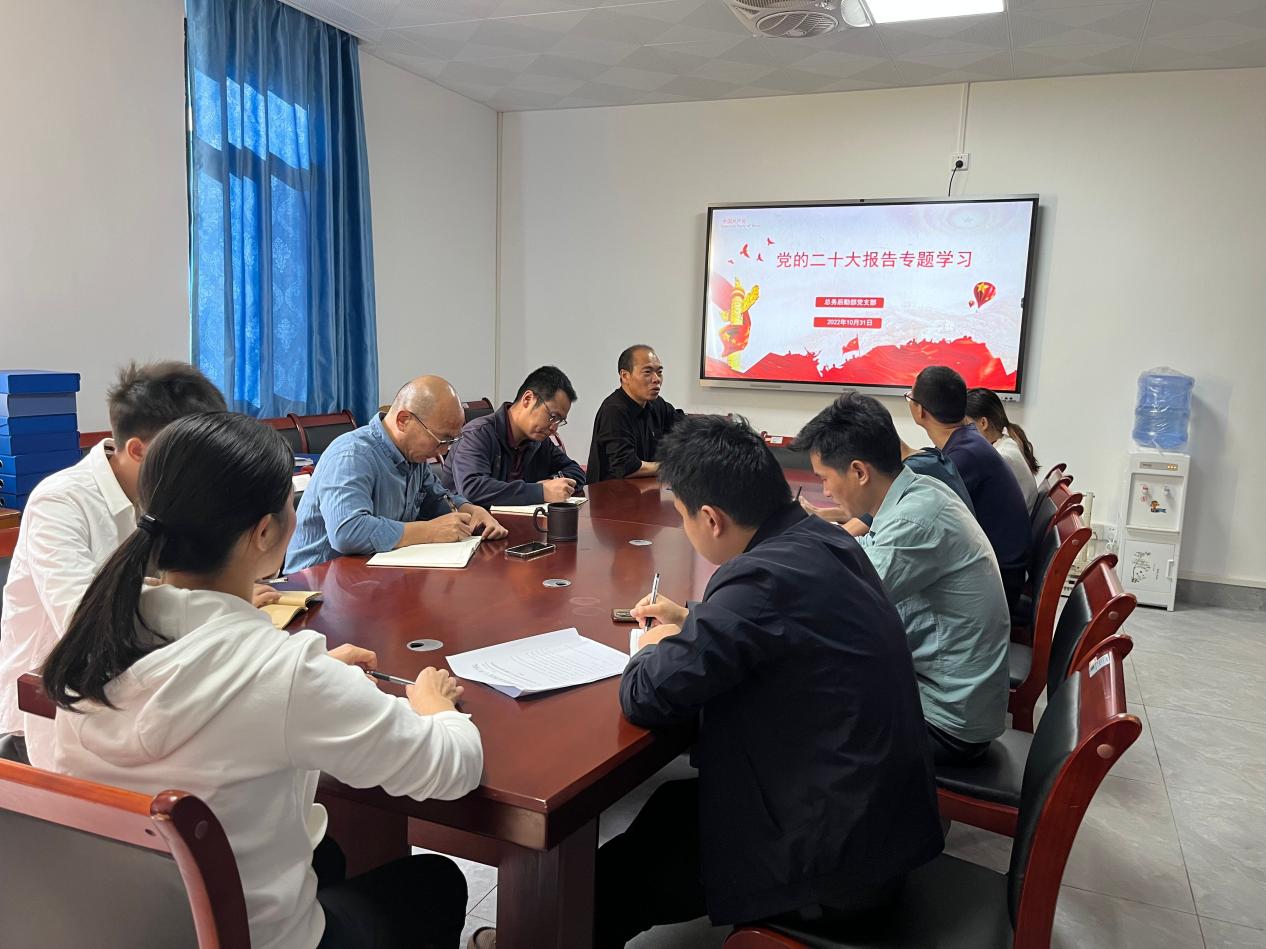 10月31日,总务后勤部党支部召开集体学习党的二十大精神会议,专题传达学习贯彻党的二十大精神。会议由党支部书记詹训进主持,总务后勤部全体人员参加。
