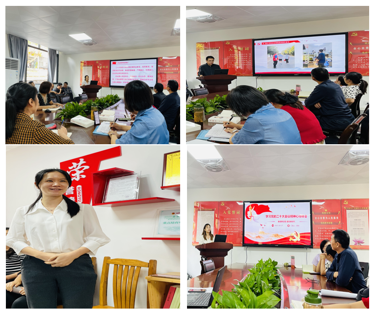 王芸、沈俊尧、林燕虹、常婷等4名教师党员代表,围绕党的二十大报告内容结合工作岗位实际,畅谈学习感悟。