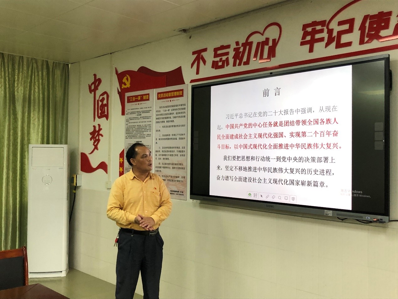 11月3日,经济管理学院在浈江校区会议室,以“中国式现代化全面推进中华民族伟大复兴”为主题,组织全体教职员工专题学习贯彻党的二十大精神。会议由经济管理学院党总支书记李凤标主讲。