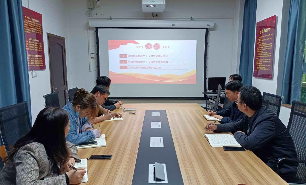 为进一步学习好、宣传好、贯彻好党的二十大精神,切实把思想和行动统一到党的二十大精神上来,推进党的二十大精神走深走实,11月25日下午,组织宣传统战部党支部在行政楼3楼会议室召开党的二十大精神宣讲会。党支部书记洪明刚主持会议。