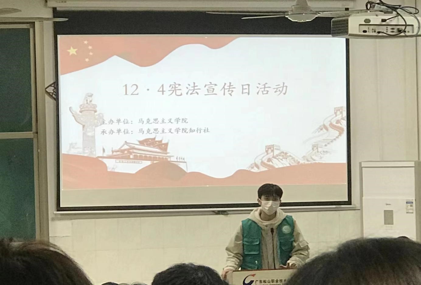 为加强我校师生的宪法意识与法治观念,进一步弘扬宪法精神,营造学法知法懂法用法的浓厚法治氛围,传播法治文化,12月4日,马克思主义学院知行社在厚C201举办“12.4宪法宣传日”活动。