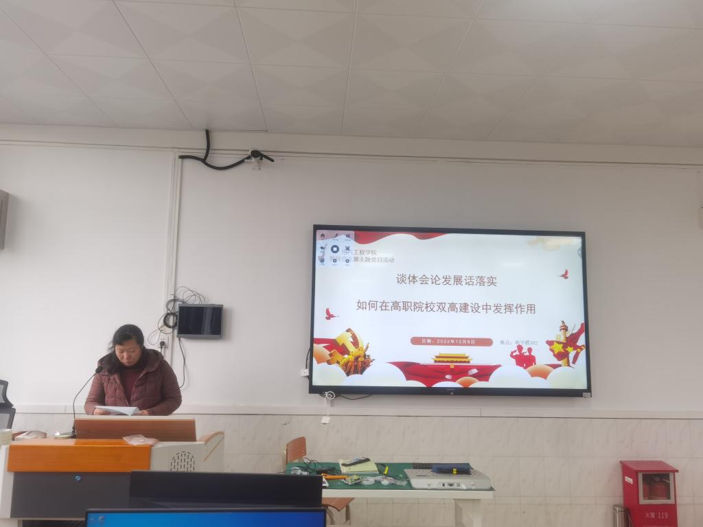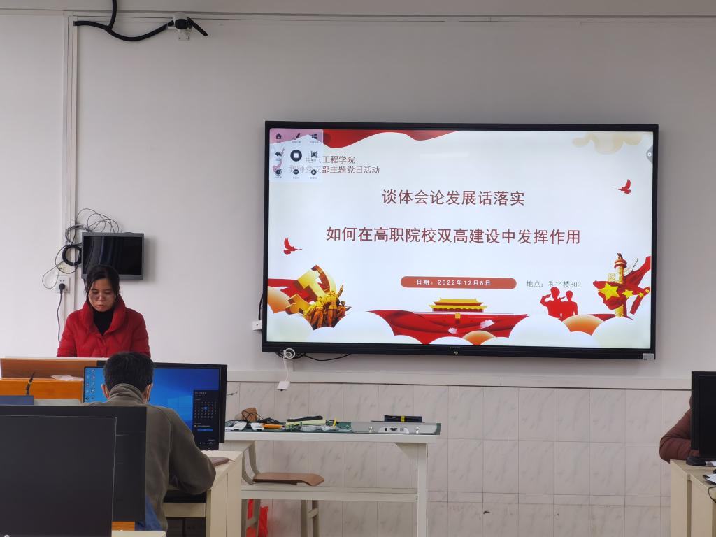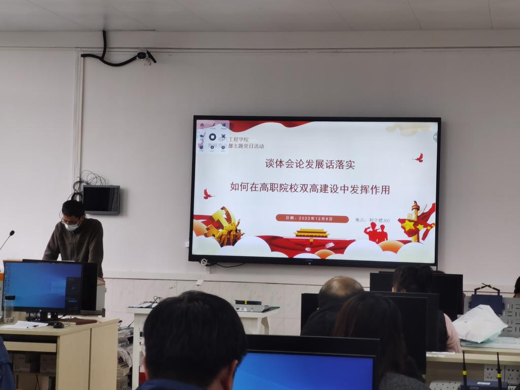 12月8日下午,电气工程学院教师党支部全体教师党员在宽字楼404教室开展了“如何在高职院校双高建设中发挥作用”——电气工程学院教师党支部“谈体会论发展话落实”专题学习交流会。
