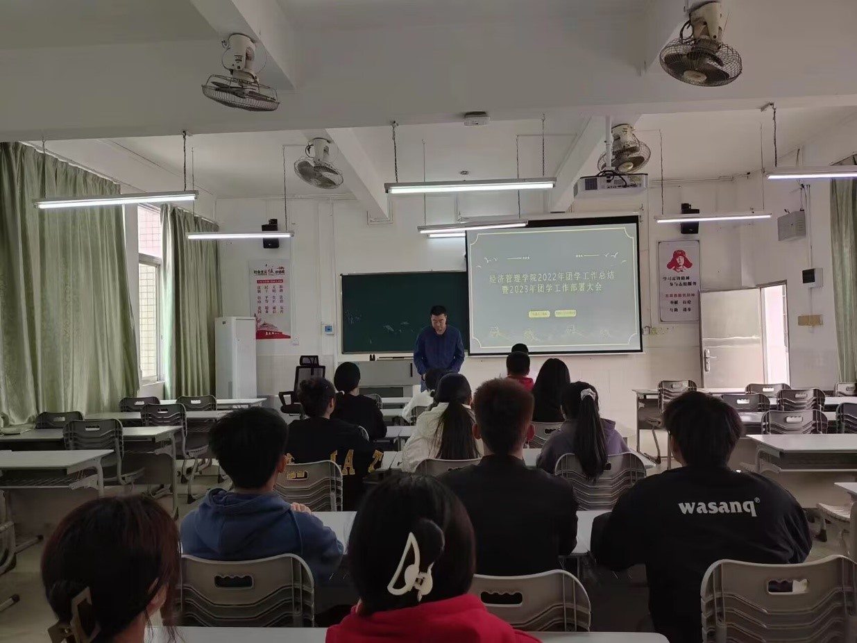 为全面总结2022年度团学各项工作,系统谋划讨论2023年度重点工作,确保新学期各项工作高质量高水平完成,3月3日,经济管理学院于在浈江校区一教306召开2022年团学工作总结暨2023年团学工作部署大会,党总支副书记苑毅出席会议,所有团学干部参加会议。经济管理学院团委负责人刘然主持会议。