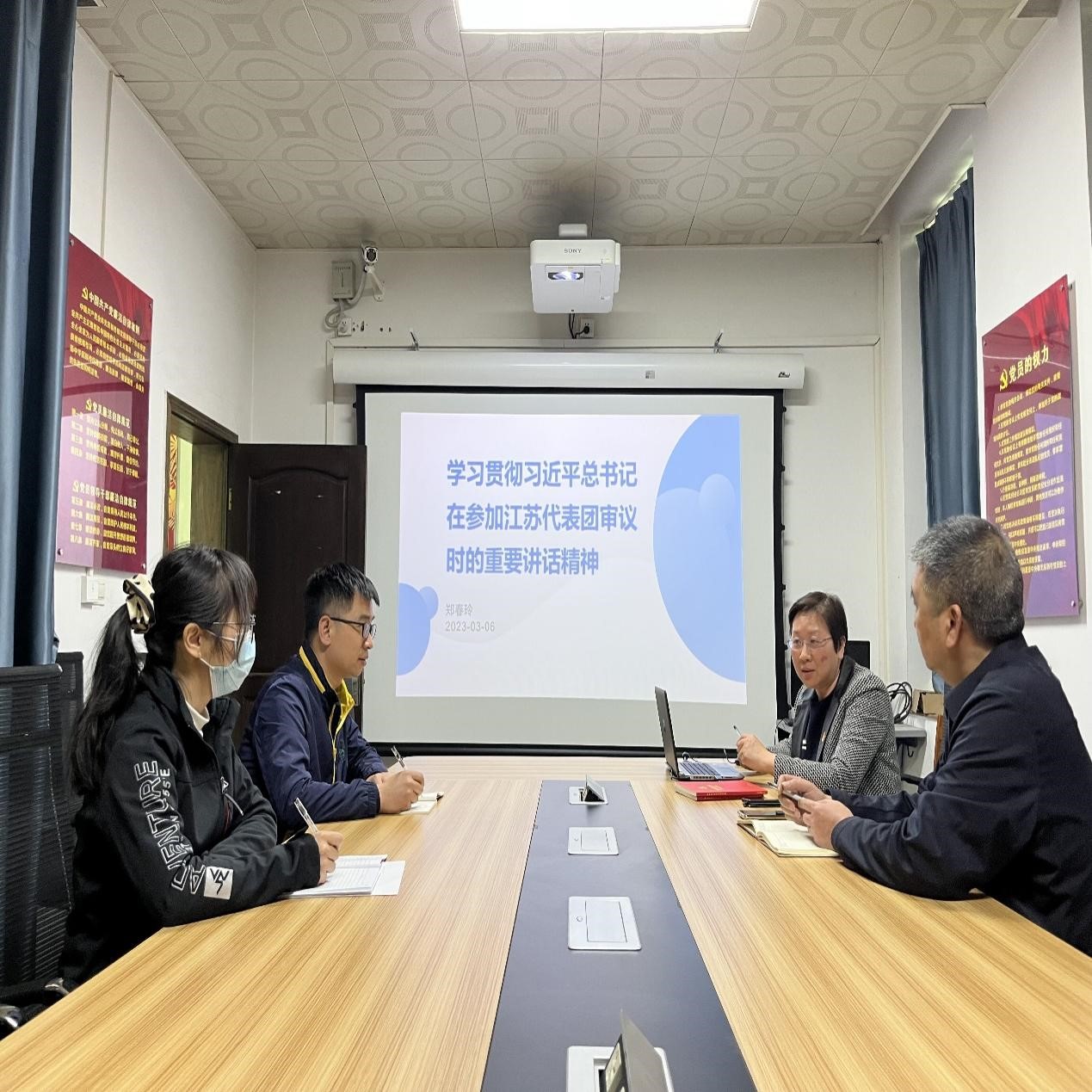 3月6日,纪检室党支部召开支部会议,深入学习贯彻全国两会精神。会议由党支部书记郑春玲主持,党委副书记、纪委书记谭春雨出席了会议。