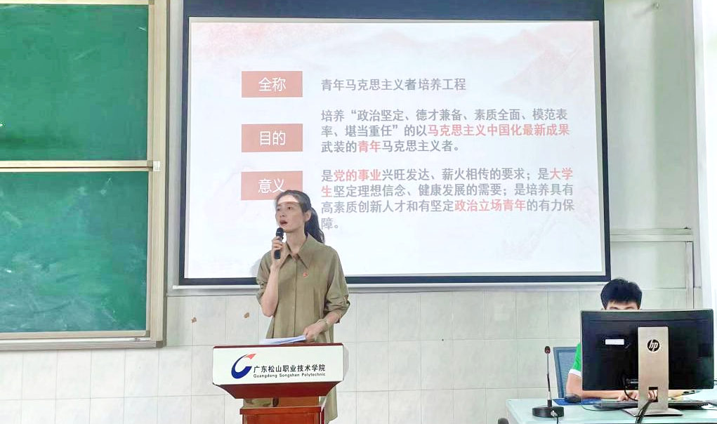 陈斌珠在开班仪式上致辞。她强调,实施“青年马克思主义者培养工程”是贯彻落实团中央政策的重要举措,是深入推进新时期学院加强大学生思想政治教育工作的具体行动,是为了促进优秀学生骨干更好更快地成长,着力在广大青年中培养造就一批用马克思主义中国化最新成果武装的青年马克思主义者。