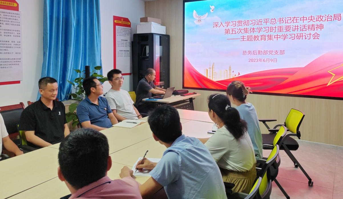 6月9日下午,总务后勤部党支部组织开展主题教育集中学习研讨会,专题学习习近平总书记在中共中央政治局第五次集体学习时的重要讲话精神,部门全体教职员工参加。会议由总务后勤部党支部书记詹训进同志主持。