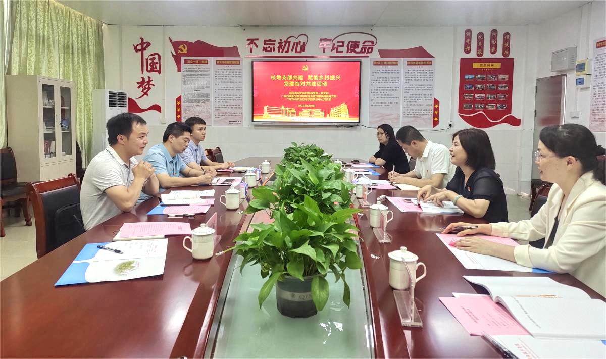 为深入学习贯彻党的二十大精神,推动学习贯彻习近平新时代中国特色社会主义思想主题教育走深走实,进一步探索高职基层党组织校地共建新模式,激发党建新活力,助力乡村振兴,6月9日,经济管理学院教师党支部与韶关市农业农村局机关第一党支部开展“校地支部共建 赋能乡村振兴”党建结对共建活动。韶关市农业农村局机关第一党支部书记邓大旺一行4人莅校交流。经济管理学院党总支副书记陈斌珠主持会议,经济管理学院院长刘春朝、党总支副书记苑毅及教师党支部支委参加活动。