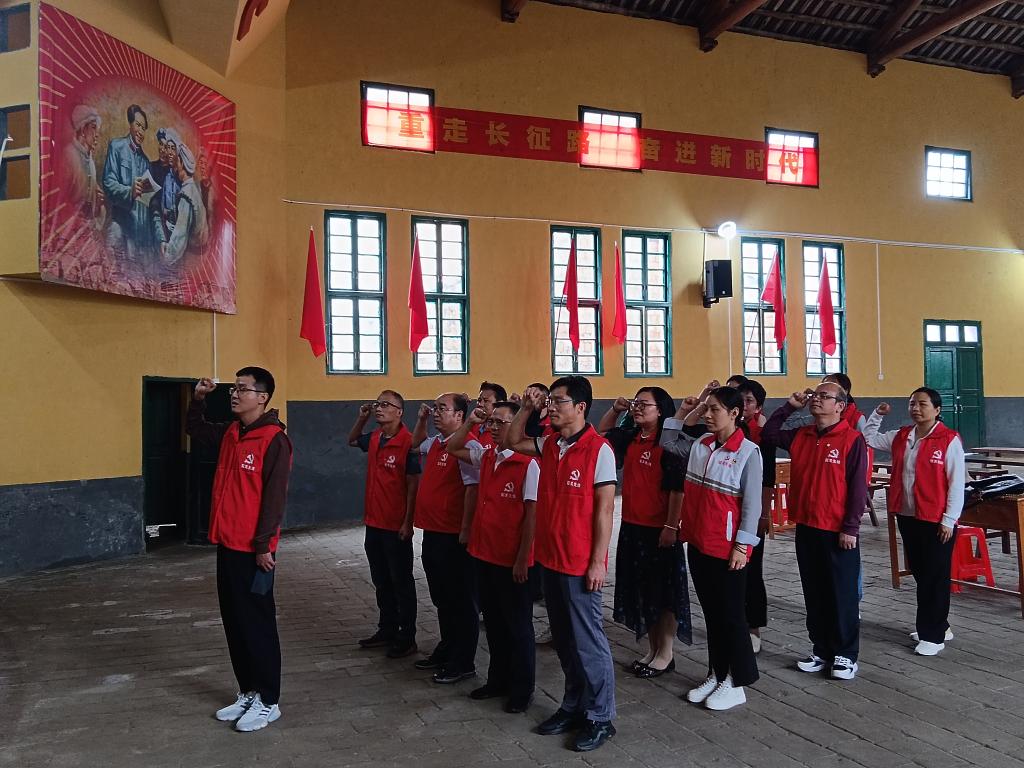 活动中,党员们面向鲜红的党旗,庄严地举起右手,在科技部党支部书记胡晓熙的领誓下重温入党誓词。随后,全体党员在郭展义博士的领唱下,合唱歌曲《映山红》。在嘹亮的歌声中,感悟党的历史,感怀峥嵘岁月,弘扬跨越时空的革命长征精神,把主题党日活动推向高潮。