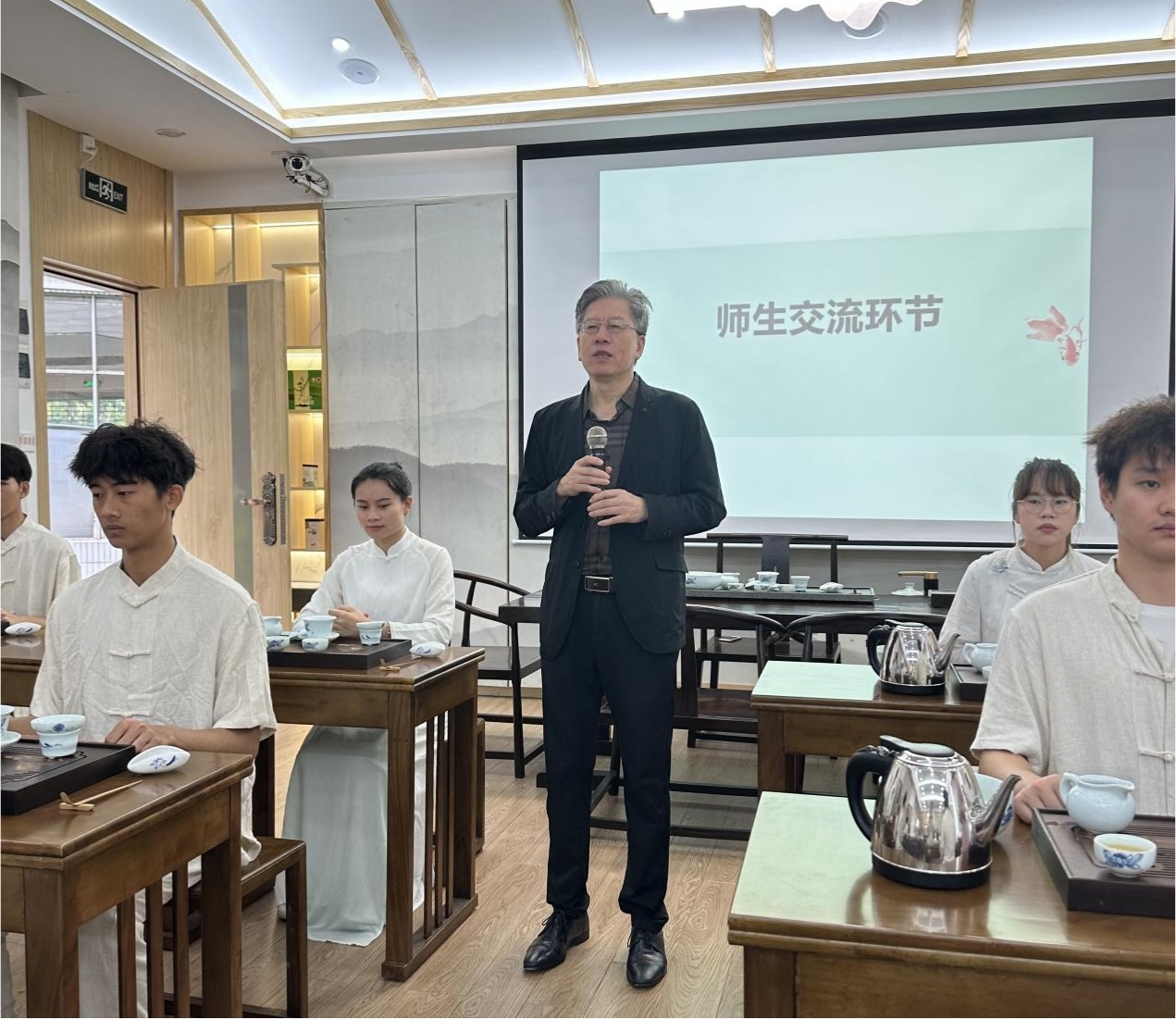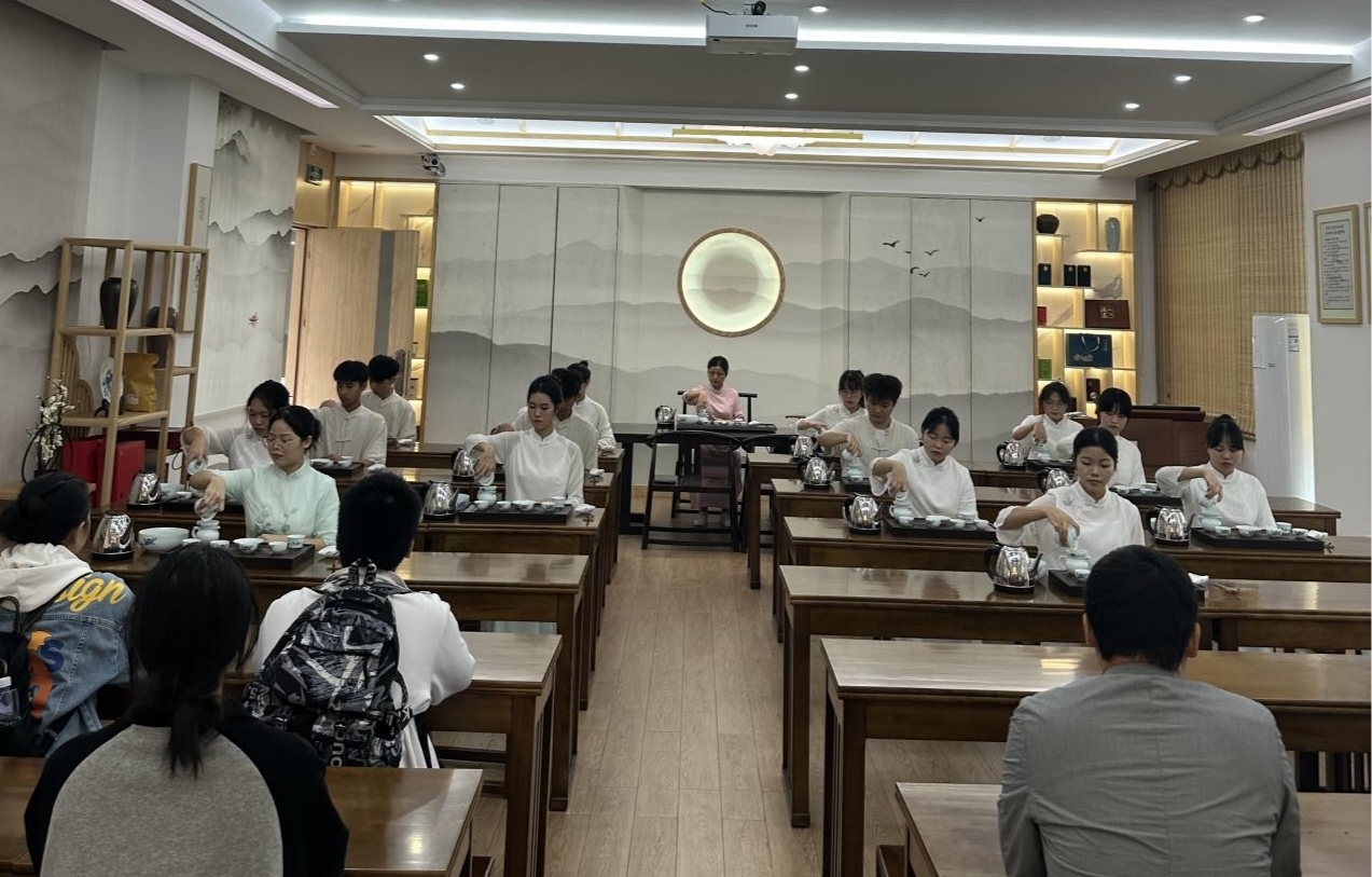 学院在交流活动中特别设置了实训室参观与讲解环节,教师分别给学生演示了导游实训室操作模拟、无人机研学设备操作、茶艺表演,展示了专业教学风采。