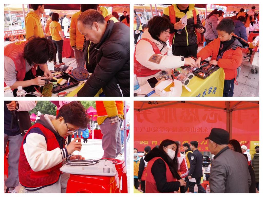 “这个充电器还能不能修好?”“这个电磁炉能通电,但就是加热不了,是为什么呢?”……活动现场,市民们带着家里有故障的小家电前来维修,我校志愿者们耐心地接待每一位市民,仔细倾听他们的需求,用专业的知识和技能准确定位问题,并迅速投入到紧张的维修工作中。他们的手法熟练,眼神专注,仿佛在进行一场无声的较量,只为让家电重新焕发生机。服务队为居民们检修故障电器的同时,普及家电保养和维修知识,截至活动结束,共维修电器10余件,获得现场居民一致好评。