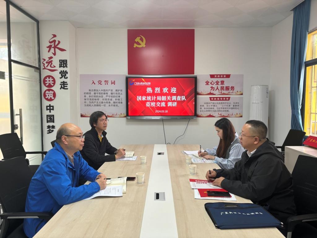 根据国家统计局2024年重点选题调研工作安排,3月18日,国家统计局韶关调查队劳动力调查科科长关韶光等一行莅校开展2024届高校毕业生就业创业情况专题调研。学校招生与就业指导中心主任陈瑞华、就业科科长马伟洪参加了调研交流活动。