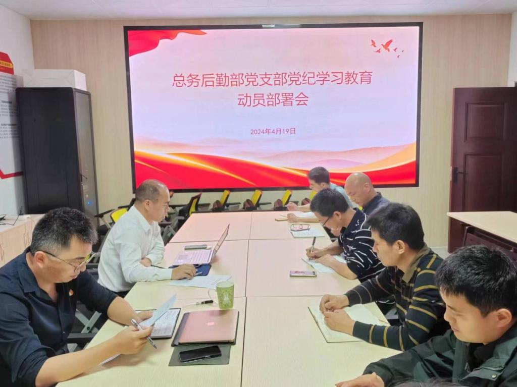 为深入学习贯彻习近平总书记关于开展党纪学习教育的重要讲话和重要指示精神,落实中央、省委有关会议精神,根据学校开展党纪学习教育的要求,4月19日,总务后勤部党支部在平字楼211会议室组织召开党纪学习教育动员部署会,支部书记詹训进主持会议并作动员讲话,全体党员同志参加。