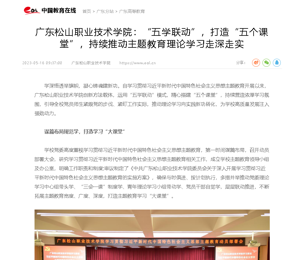 上一条:高校之窗:广东松山职业技术学院:打好“一平台三同步”产教融合“组合拳”,助推职业教育高质量发展 下一条:韶关日报:欧洲驻华外交官走进广东松山职业技术学院 搭建韶关与欧洲教育交流桥梁