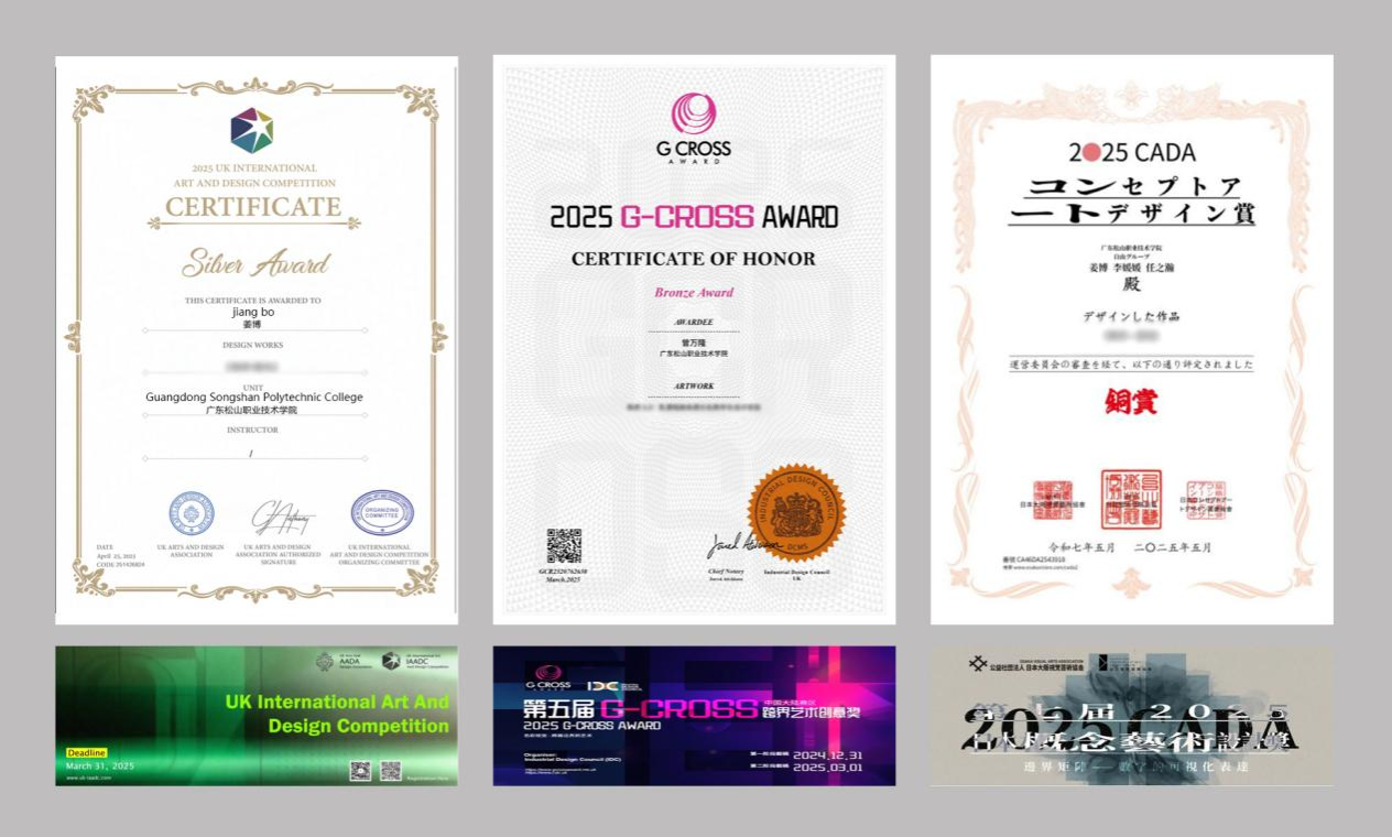 近日,我校计算机与信息工程学院传来捷报!数字媒体技术专业群教师团队(姜博、曾万隆、李媛媛、任之瀚)在三项国际设计大赛中脱颖而出,以卓越的创新实力与精湛的设计水平,斩获多项重量级奖项,充分彰显了我校在艺术设计与数字技术融合创新领域的深厚底蕴与显著成果。