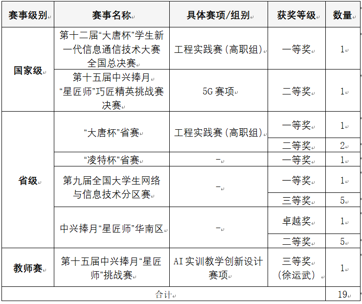 近期,电气工程学院徐运武老师团队在通信类学科竞赛中捷报频传,密集斩获涵盖国赛、省赛及分区赛的高规格奖项19项(详见下表)。这一系列优异成绩,有力印证了学院“课赛研创”育人模式的丰硕成果,充分彰显了师生扎实的专业功底、卓越的实践能力与创新精神。