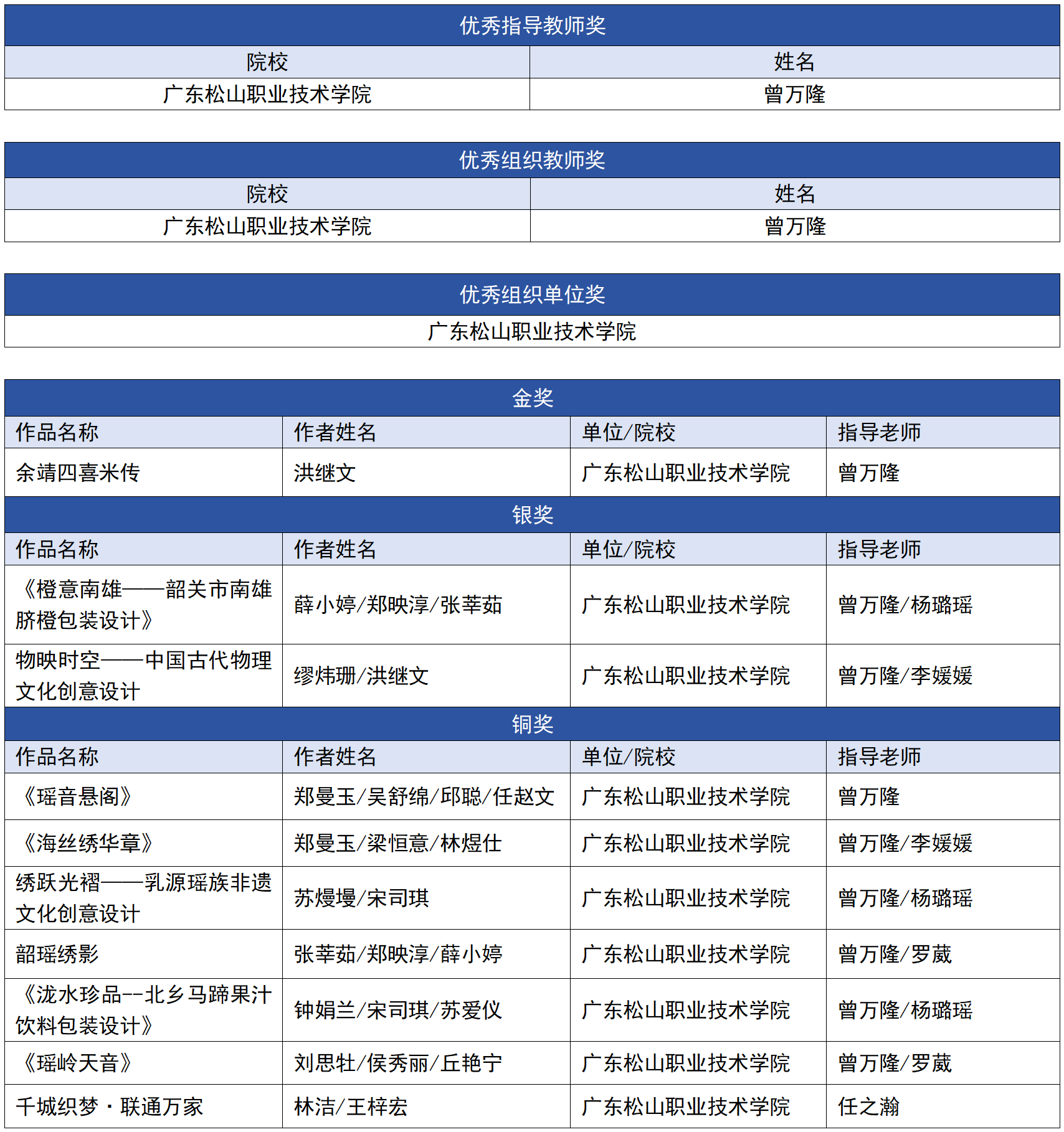 近日,第六届东方创意之星创新设计大赛(学生赛)粤港澳赛区获奖名单公示,由我校计算机与信息工程学院数字媒体技术专业群教师曾万隆、李媛媛、罗葳、杨璐瑶、任之瀚指导的学生作品获金奖1项、银奖2项、铜奖7项,曾万隆老师获“优秀指导教师”和“优秀组织教师”,我校获“优秀组织单位”。