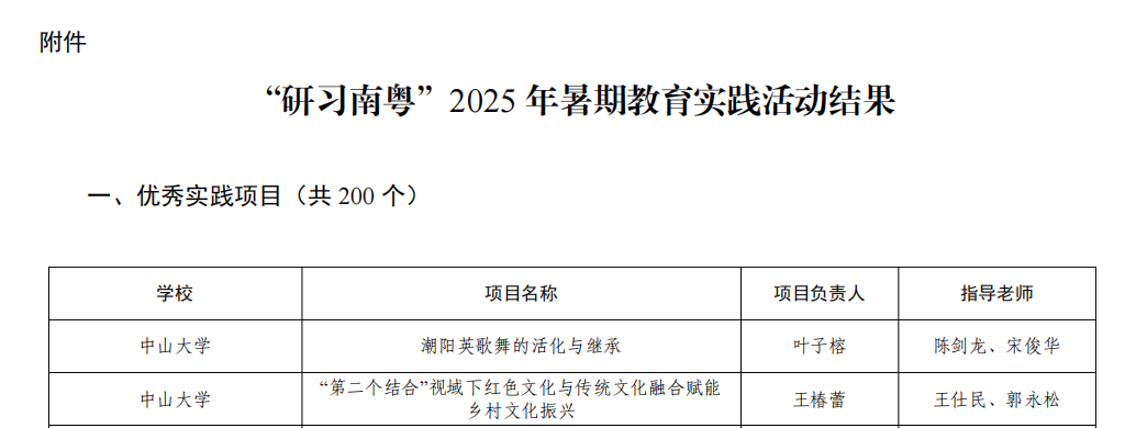 在2025年广东大中专学生志愿者暑期文化科技卫生“三下乡”社会实践活动暨广东青年大学生“百千万工程”突击队行动评选中,我校《童心编程,梦想启航一一少儿编程志愿服务队》和《古韵之“曲”一一非遗传承青年突击队》两个实践项目,凭借扎实的服务成效、清晰的实践逻辑,成功获评典型案例。两个项目分别聚焦科技普及与非遗传承,组织学子深入基层、服务社会,在实践中锤炼本领、贡献青春力量,充分体现了我校在推动“百千万工程”落地、深化实践育人方面的显著成果。