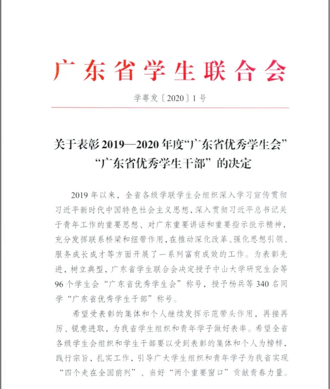 近日,广东省学生联合会正式公布《关于表彰2019-2020年度广东省优秀学生会、优秀学生社团、优秀学生干部的决定》(学粤发〔2020〕1号),我校经济管理学院学生会荣获“广东省优秀学生会”称号、电气工程学院团委副书记吴国桂同学获“广东省优秀学生干部”称号。据统计,全省仅有96个集体和340名个人获此殊荣。
