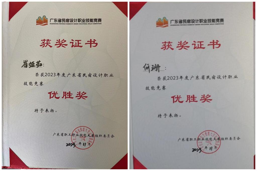 11月25日至26日,由广东省总工会、广东省人力资源和社会保障厅、广东省工业和信息化厅、广东省科学技术厅联合主办,以“创新民宿设计,设计绿美广东”为主题的2023年广东省民宿设计职业技能大赛决赛在广东机电职业技术学院举行,经过激烈的角逐,建筑学院教师崔娅茹、何珊荣获优胜奖。