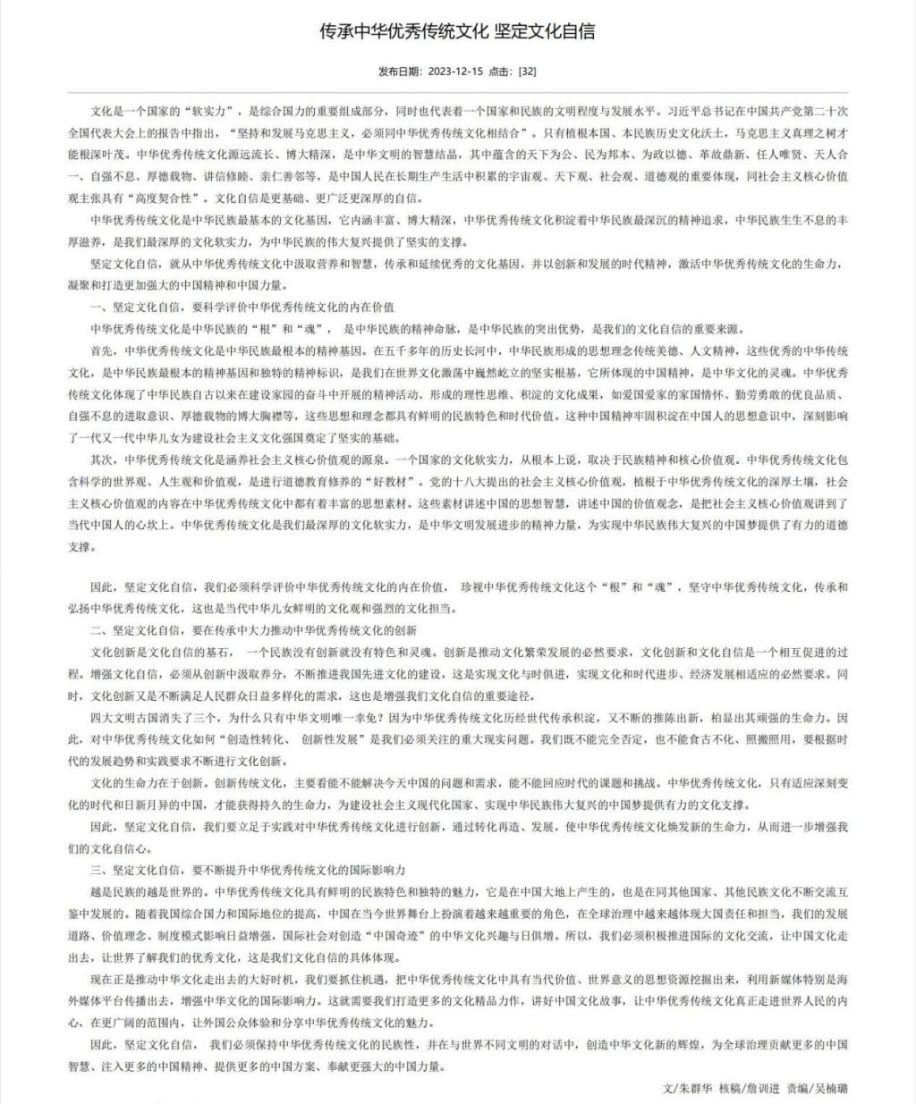 朱群华《传承中华优秀传统文化,坚定文化自信》