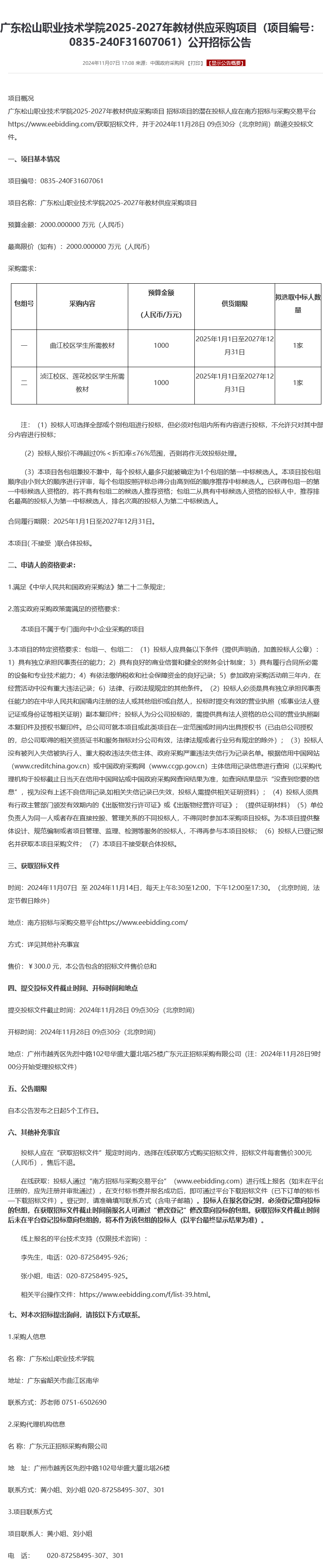 上一条:【校内采购公告】“智慧校园--智慧图书馆建设”项目设计咨询服务(二次)询价公告 下一条:【中标(成交)结果公告】广东松山职业技术学院毕业生现场招聘会场地布置及优秀企业展示现场布置服务项目(二次)采购结果公告