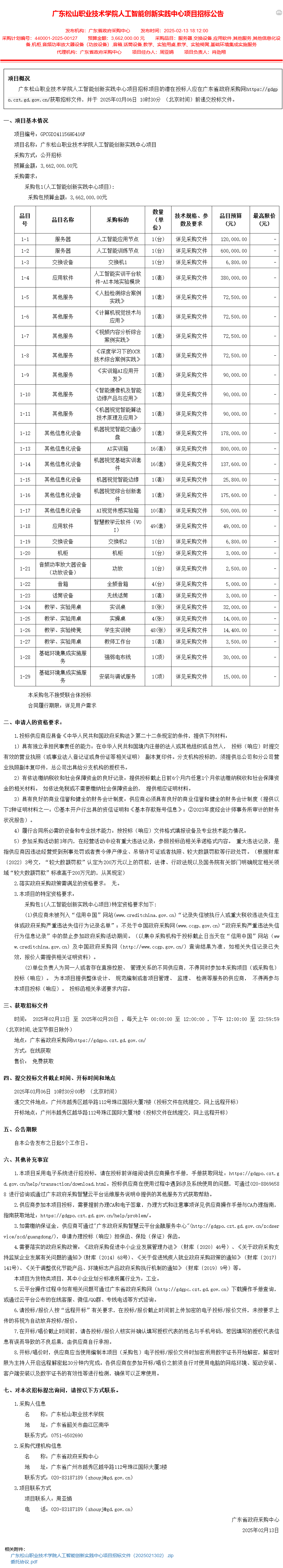 上一条:【采购公告】广东松山职业技术学院鸿蒙开发实践中心建设项目招标公告 下一条:【校内采购公告】广东松山职业技术学院2025年办公用品采购项目询价公告