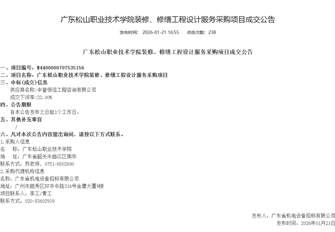 下一条:【采购公告】广东松山职业技术学院商务数据分析实训基地建设项目招标公告