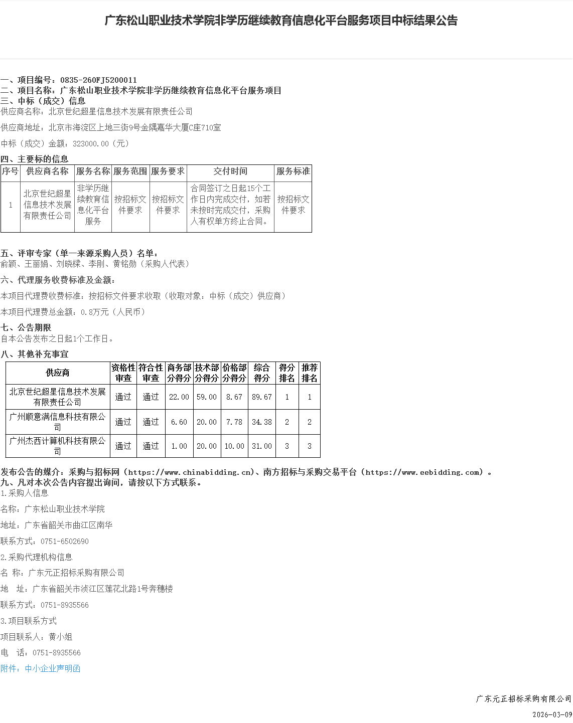 下一条:【中标(成交)结果公告】广东松山职业技术学院浈江校区2026年度绿化、保洁服务项目结果公告