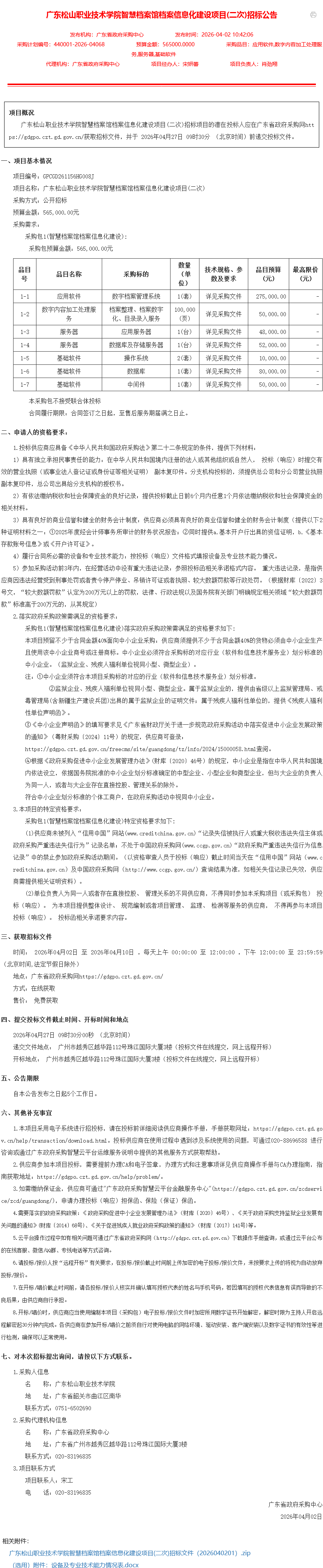 上一条:【中标(成交)结果公告】广东松山职业技术学院大学生活动中心装修改造建设项目结果公告 下一条:【终止公告】广东松山职业技术学院智慧档案馆档案信息化建设项目失败公告