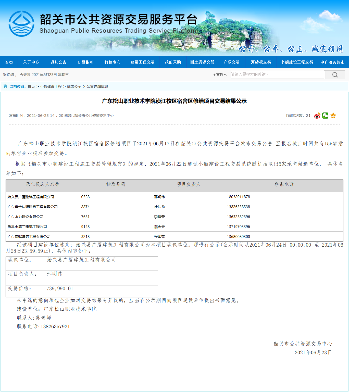 上一条:【采购公告】学校2021年实验实训室牌匾制作及安装服务项目采购公告 下一条:【采购公告】广东松山职业技术学院2021年中文图书采购项目(项目编号:1371-2141GDGH1141)公开招标公告