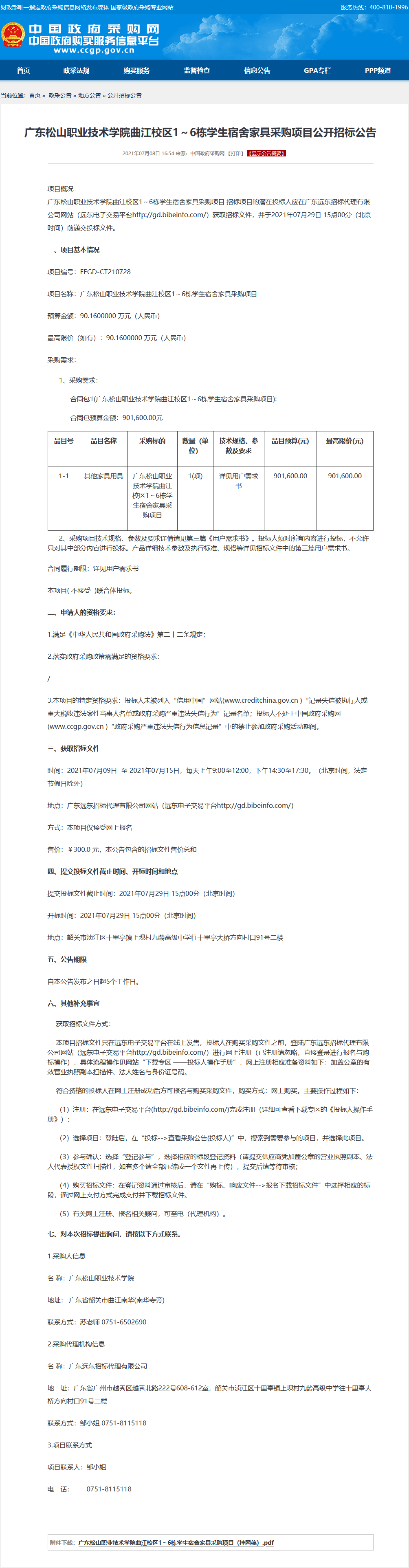 上一条:【中标(成交)结果公告】1-6栋学生宿舍楼铁架床翻新服务结果公示 下一条:【采购公告】广东松山职业技术学院曲江校区教室家具采购(CLF0121SG00QY68)公开招标公告