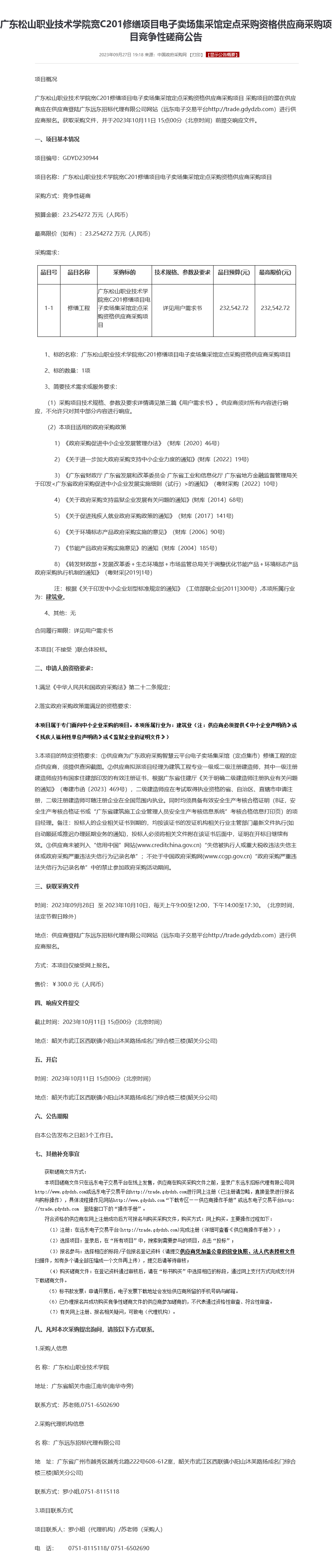 上一条:【中标(成交)结果公告】广东松山职业技术学院宽C201修缮项目电子卖场集采馆定点采购资格供应商采购项目成交公告 下一条:【中标(成交)结果公告】曲江校区教工之家家具采购结果公告
