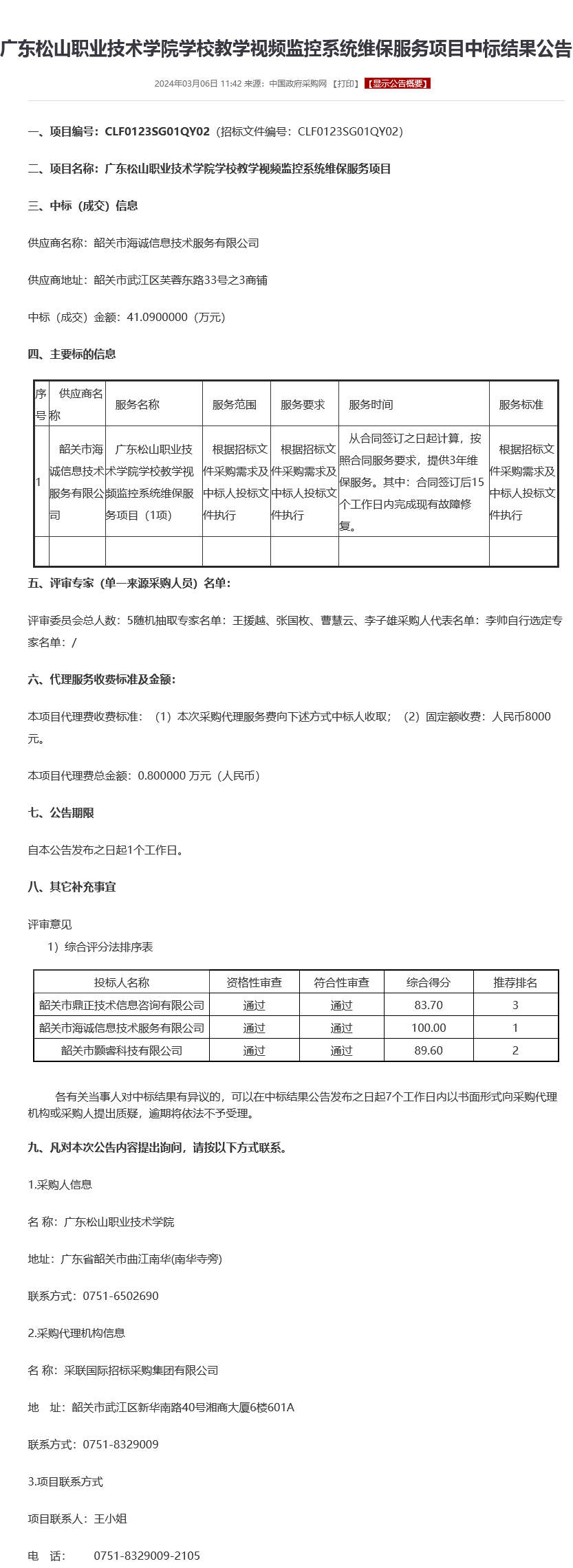 上一条:【中标(成交)结果公告】先进制造学院2024年春季学期实训材料采购项目采购结果公告 下一条:【中标(成交)结果公告】广东松山职业技术学院2023-2024年审计服务项目(四次)采购结果公告
