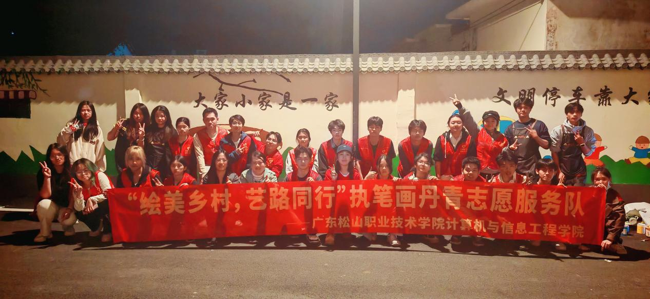 为深入贯彻广东省“百县千镇万村高质量发展工程”战略部署,全面落实学校“双百行动”结对共建工作要求,12月10日,计算机与信息工程学院“执笔画丹青”志愿服务队30名师生应韶关市曲江区人民政府邀请,前往曲江区典型镇——枫湾镇开展主题墙绘创作,当日完成墙绘总面积近300平方米,以专业实践助力乡村风貌提升,以实际行动服务“百千万工程”在基层落地。