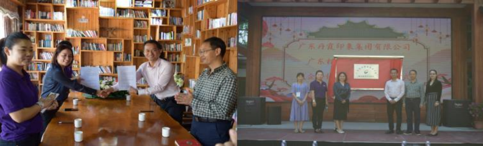 首先,双方就如何推进现有的合作项目、进一步加强校企合作和产教融合交换了意见。刘攀桂同志表示值广东松山职业技术学院上下大力开展“不忘初心、牢记使命”主题教育之际,广东松山职业技术学院外语商务学院通过深入学习、调研,发现还存在着与企业合作深度不够、与韶关经济发展契合度不够、对韶关经济的服务力度不够等问题,希望借着这次主题教育活动推动校企合作走上新高度,为地方经济发展、人才培育做出新内容。高恒冠同志介绍了广东松山职业技术学院和系部未来的发展规划,广东松山职业技术学院正迎来搬迁新建、高职扩招等重大历史机遇。作为韶关唯一一所省属高职院校,广东松山职业技术学院外语商务学院将进一步贯彻落实立德树人的根本任务,坚持校企合作和产教融合,树牢“人才是第一资源”的育人理念,适时增设地方企业发展急需的、与地方经济发展契合度高的相关专业,大力培养大批高素质技能型专业人才,以更好地服务和推动韶关经济社会发展。符小蜜董事长介绍了丹霞印象的发展历程。经过近十年的发展,企业已经初具规模,现在面临着很多机遇,急需各类优秀人才共同开拓新天地,希望通过开展校企合作和产教融合解决企业发展壮大面临的人才难题,从而进一步提升企业竞争力和影响力。交流结束后,双方进行了校企合作仪式签约和校外实习基地揭牌仪式。